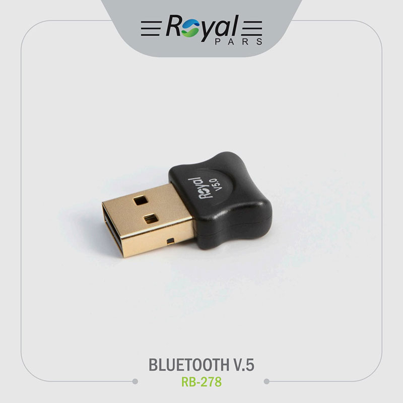 دانگل BLUETOOTH V.5 رویال مدل RB-278 وسیله ای است که شما دستگاهایی که دارای پرت یو اس بی هستند از جمله کامپیوتر و لپتاپ میتوانید به گوشی خود و هدستهای وایرلس و هر دستگاه دیگری که دارای بلوتوث می باشد اتصال دهید و انتقال اطلاعات انجام دهید . ورزن 5 این محصول باعث شده سرعت بیشتری نسبت به قبل داشته باشه و بتوانید سرعت و کیفیت بیشتری را تجربه کنید